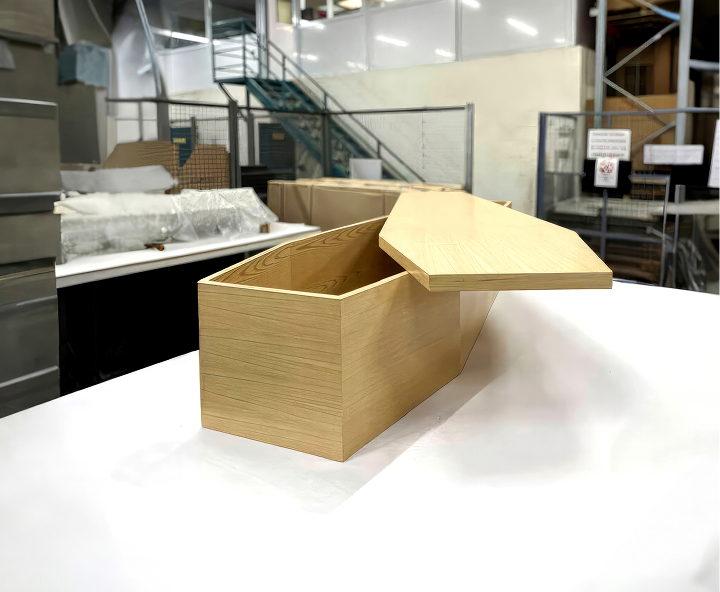 Le cercueil EOLE est un cercueil parisien en carton alvéolaire recyclé avec placage chêne, conçu par ALTERCO comme alternative au cercueil en chêne pour la crémation. Le chêne, avec sa combustion lente, peut retarder l’activité des crématoriums, qui préfèrent les matériaux à combustion rapide comme le bois léger ou le carton.